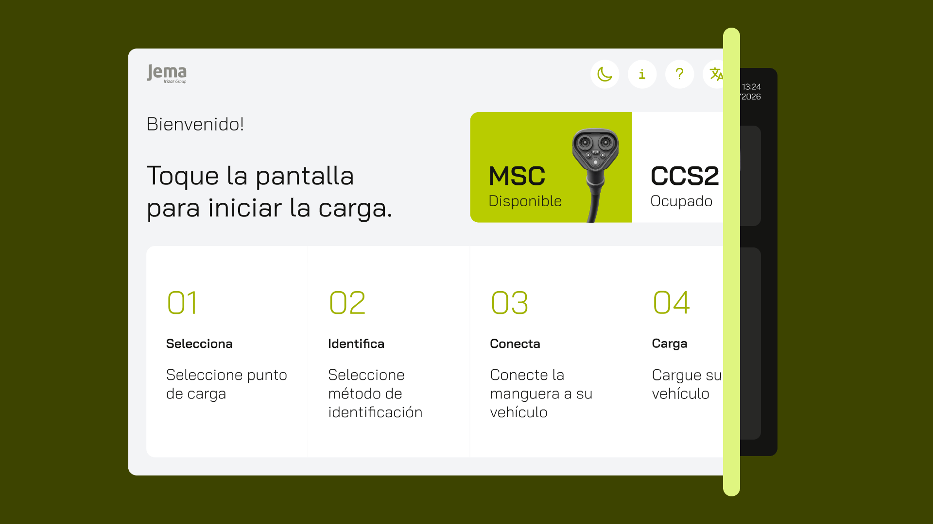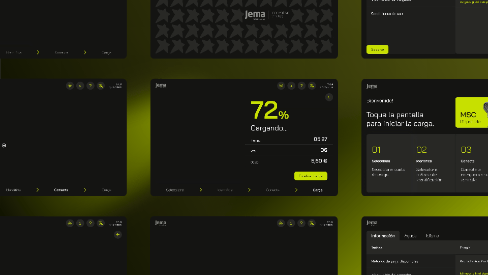 Jema confió en bigD el diseño de la interfaz HMI de sus cargadores de vehículo eléctrico, con el objetivo de garantizar una interacción clara, intuitiva y coherente con su identidad de marca.
