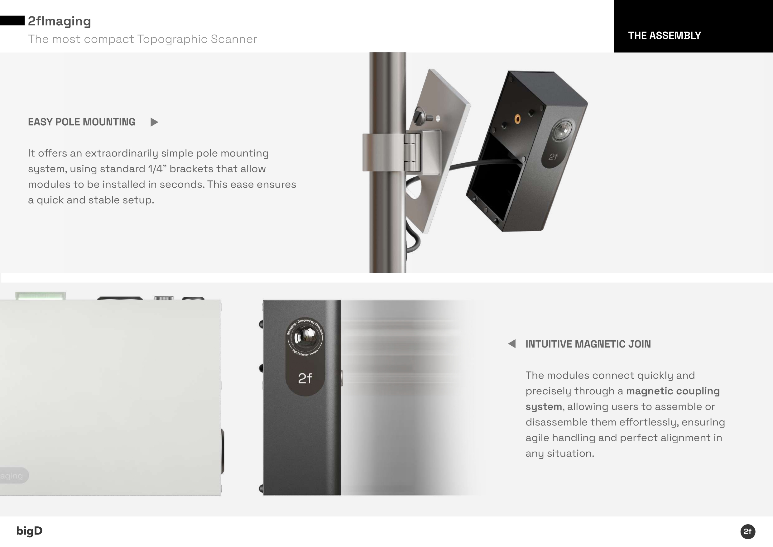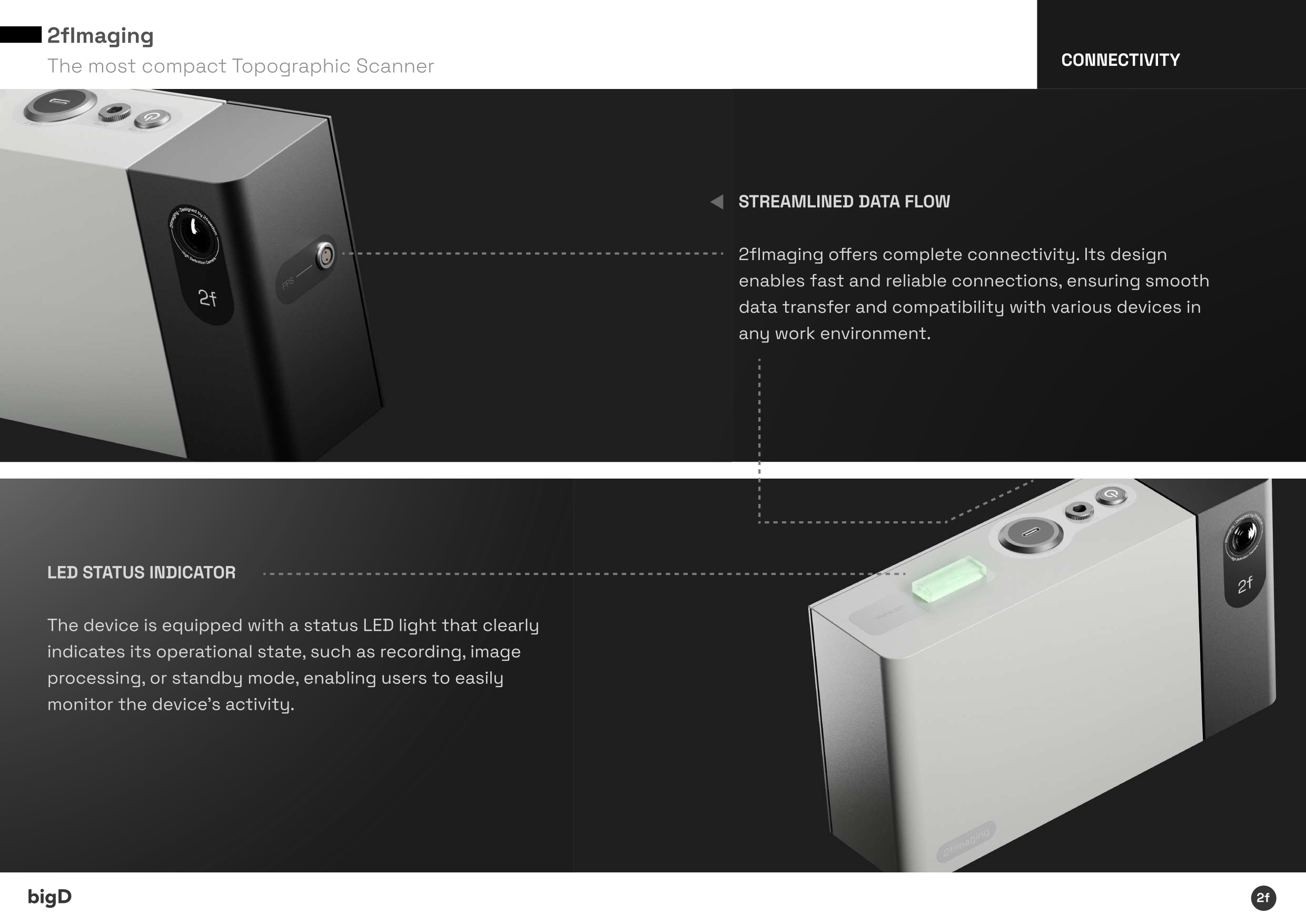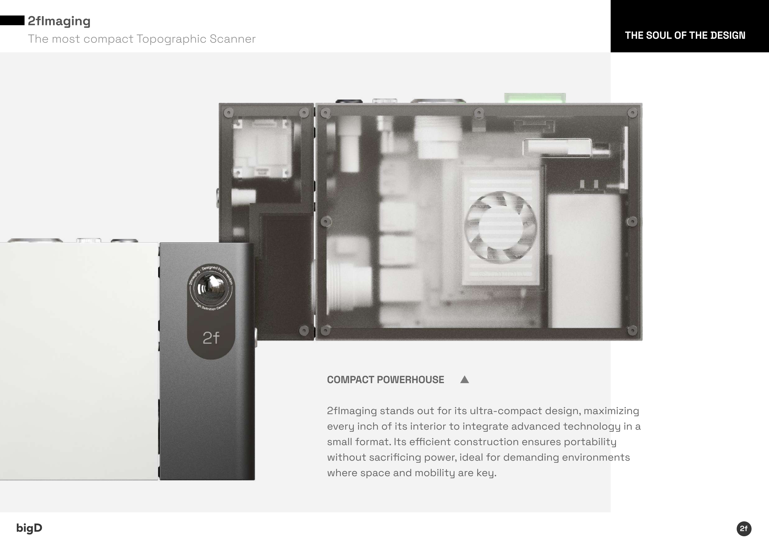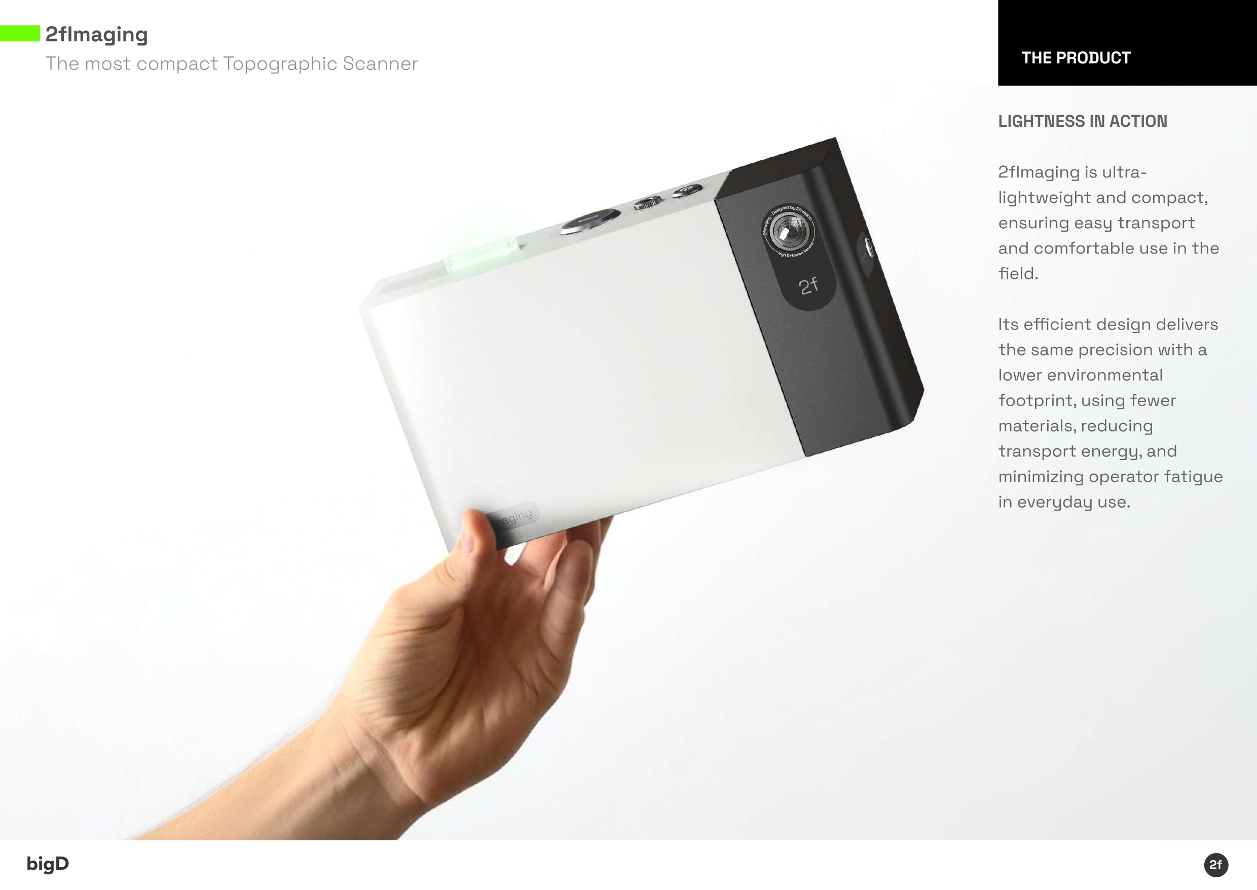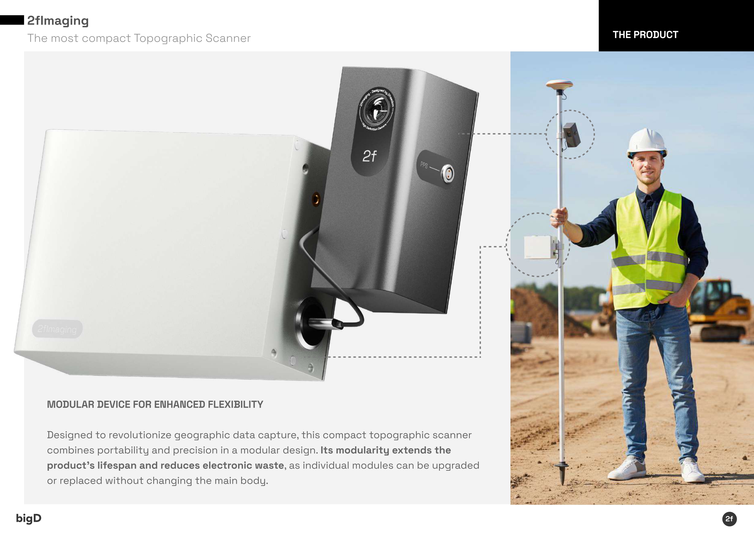 En colaboración con 2freedom, diseñamos 2fImaging, un escáner topográfico compacto que redefine la captura de datos geográficos profesionales. El reto consistía en concentrar precisión, conectividad y robustez en un formato portátil y sostenible, optimizado para el trabajo de campo.